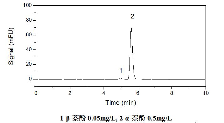 FLD激發(fā)波長(nm):230,發(fā)射波長(nm):460(α-萘酚分析條件)、360(β-萘酚分析條件)