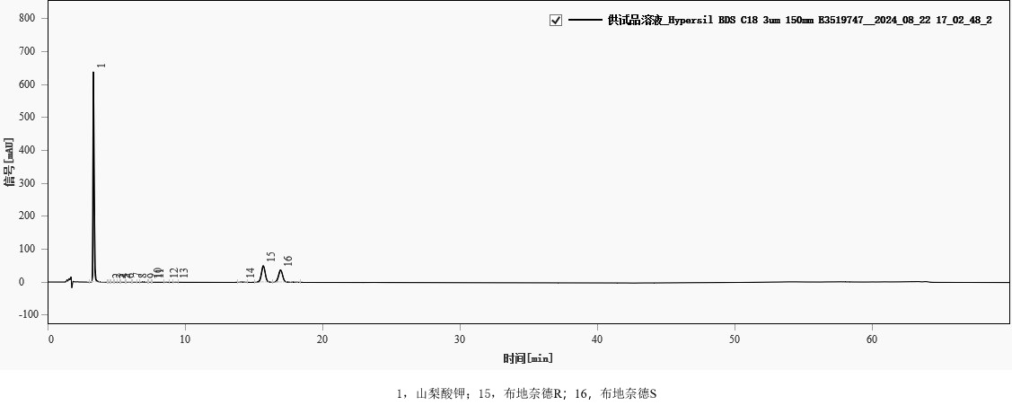 A:無水乙醇/乙腈/磷酸鹽緩沖溶液(pH3.2)=2/32/68 B:乙腈/磷酸鹽緩沖溶液(pH3.2)=1/1,梯度洗脫
