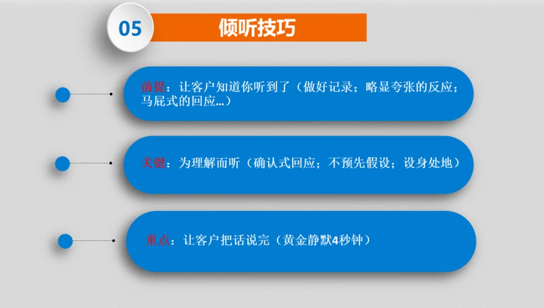 為什么始終被客戶牽著鼻子走?因為你缺少一套銷售流程,所以不知道在哪個節(jié)點上講什么內(nèi)容,以及解決什么問題?為什么你不會銷售?拋出一道銷售思考題,給你6個核心銷售節(jié)點:引發(fā)興趣、了解需求、相互信任、產(chǎn)品介紹、下達成交指令、解除顧慮點,你會如何來組合呢?不同的組合將會產(chǎn)生不同的結(jié)局。
