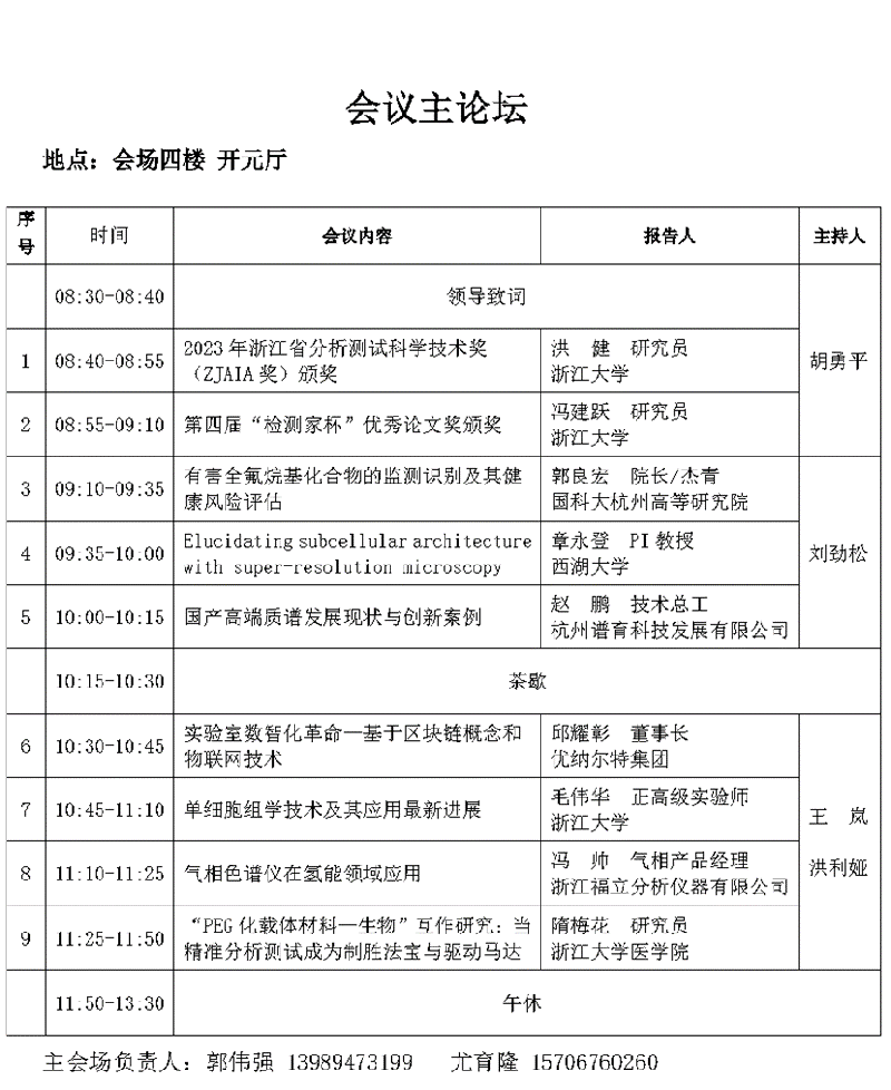 本次會(huì)議為期一天,上午設(shè)主會(huì)場(chǎng),邀請(qǐng)了省內(nèi)外知名專(zhuān)家學(xué)者作大會(huì)報(bào)告;下午設(shè)7個(gè)分會(huì)場(chǎng):色譜與質(zhì)譜分析、光譜與電化學(xué)分析、電鏡與微結(jié)構(gòu)分析、細(xì)胞生物與生化分析、生物大分子分析、核磁共振波譜分析以及檢驗(yàn)檢測(cè)機(jī)構(gòu)等專(zhuān)業(yè)領(lǐng)域的專(zhuān)家學(xué)者及青年學(xué)者作分會(huì)場(chǎng)專(zhuān)題報(bào)告。會(huì)議還設(shè)有國(guó)內(nèi)外廠商分析測(cè)試儀器及相關(guān)設(shè)備展區(qū)。