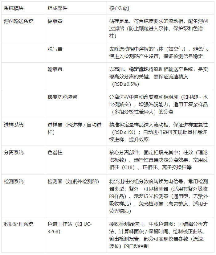 表格 2:HPLC 儀器核心結(jié)構(gòu)及功能?