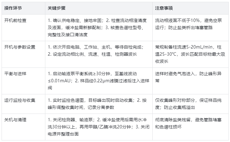 制備液相色譜儀的操作核心在于“精準(zhǔn)控制”與“循序漸進”,每一步都直接影響分離效果和設(shè)備安全,新手尤其要牢記細節(jié)。