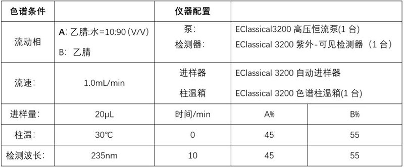 肉桂醛是一種香料,它具有促進(jìn)生長、改進(jìn)飼料效率以及控制禽、畜細(xì)菌性下痢的功能,并能增加飼料的香味,引誘動(dòng)物進(jìn)食,還能長時(shí)間防止飼料霉變。肉桂醛還可以促進(jìn)雞、鴨、豬、牛的生長,提高氮素在動(dòng)物體內(nèi)的貯留量(約提高7%)而氮素為合成動(dòng)物肌肉細(xì)胞的主要成份,所以對(duì)屠體品質(zhì)的改善具有正面的影響。依利特使用EClassical 3200液相色譜儀匹配經(jīng)典的Supersil ODS2色譜柱,對(duì)肉桂醛樣品的成分進(jìn)行分析檢測(cè)。