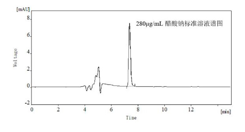 精準(zhǔn)稱(chēng)取醋酸鈉25mg,精確至0.0001g,用水溶解,配制成1000μg/mL儲(chǔ)備液;并用水稀釋成120μg/mL、160μg/mL、200μg/mL、240μg/mL、280μg/mL的工作液。