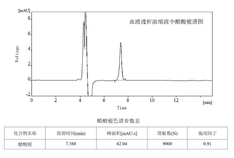 醋酸根:按A:B:水:流動(dòng)相=1:1.225:16.388:16.387(v/v)的比例稀釋?zhuān)?.45μm膜過(guò)濾,測(cè)定。