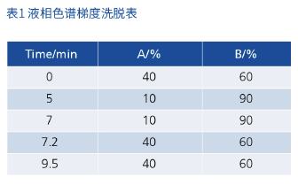 色譜柱:Quasar C18,100×2.1mm,3μm,貨號(hào):N9308812(原文提及 “Supersil ODS2 2.1×100,3μm”,以實(shí)際檢測(cè)用 Quasar C18 柱為準(zhǔn));流動(dòng)相:A 為 50% 甲醇水(含 0.5% 甲酸),B 為乙腈(含 0.5% 甲酸);柱溫:40℃;流速:0.5mL/min;進(jìn)樣量:10μL;