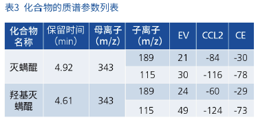 表 3 化合物的質(zhì)譜參數(shù)列表