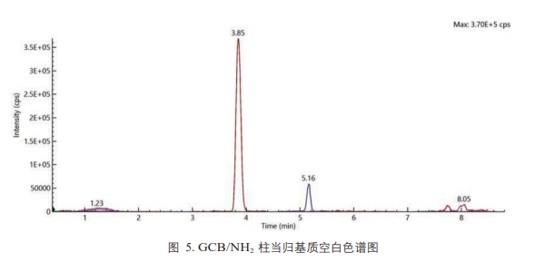方法二:先用 10mL 乙腈 / 甲苯 = 3/1 (V/V) 活化 GCB/NH?小柱,之后量取直接提取法制備的供試液 2mL 加入到小柱中,待上樣完畢,用 20mL 乙腈 / 甲苯 = 3/1 (V/V) 進(jìn)行洗脫,收集上樣液和洗脫液,40℃旋蒸濃縮至近干,用乙腈轉(zhuǎn)移并稀釋至 2mL,混勻,取上清液 1mL,加入 0.3mL 水,過(guò) 0.22μm 濾膜即得。