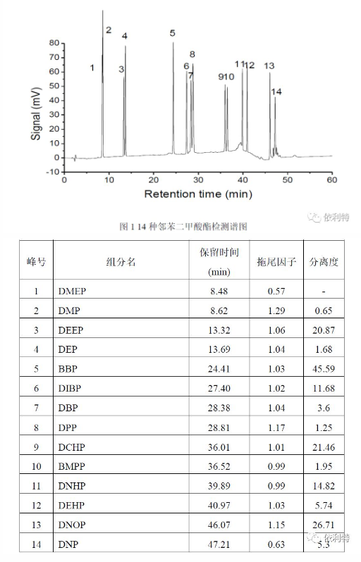 結(jié)果表明使用我公司高效液相色譜儀對14種鄰苯二甲酸酯類物質(zhì)進行檢測,具有實驗簡單,成本低,結(jié)果可靠等優(yōu)點;可滿足食品、環(huán)境、電子產(chǎn)品等行業(yè)中對鄰苯二甲酸酯類物質(zhì)的檢測要求。