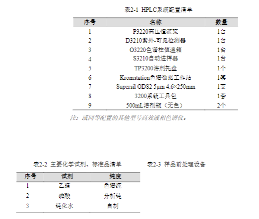 本實驗參考《GB/T 5750.8-2023 生活飲用水標準檢驗方法 第 8 部分:有機物指標》,采用依利特公司生產(chǎn)的 EClassical 3200 高效液相色譜儀,對生活飲用水中的丙烯酸的液相色譜測定法進行方法驗證。