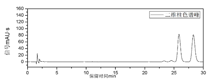 2D-LC的一維中僅出現(xiàn)一個VD峰,表明VD2 與VD3并沒有被分開;而在二維中,VD2和VD3的色譜峰有著良好的基線分離。