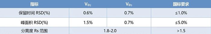 2、保留時間與峰面積 RSD 均低于國標限值,重復性穩(wěn)定。