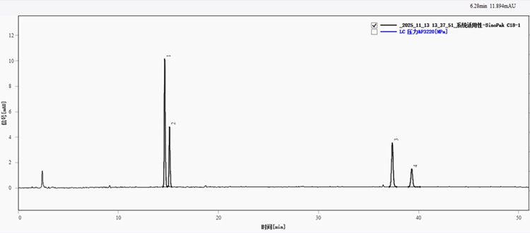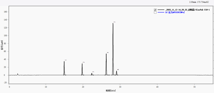 圖1. 系統(tǒng)適用性溶液在SinoPak C18色譜柱上分離的色譜圖