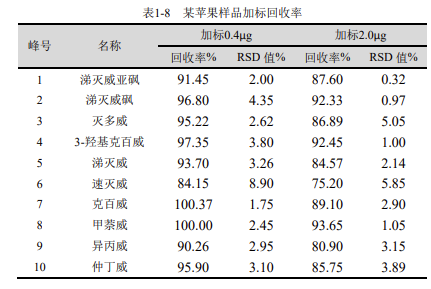 大連依利特分析儀器有限公司,結(jié)合《NY/T 761-2008 蔬菜和水果中有機(jī)磷、有機(jī)氯、擬除蟲(chóng)菊酯和氨基甲酸酯類農(nóng)藥多殘留的測(cè)定》方法及相關(guān)文獻(xiàn)中關(guān)于農(nóng)殘測(cè)定的要求,建立的氨基甲酸酯分析系統(tǒng),提出了蔬果中氨基甲酸酯類農(nóng)藥殘留檢測(cè)的全套解決方案,并以蘋果為樣品進(jìn)行了檢測(cè),實(shí)驗(yàn)結(jié)果能夠達(dá)到標(biāo)準(zhǔn)中各項(xiàng)指標(biāo)要求。