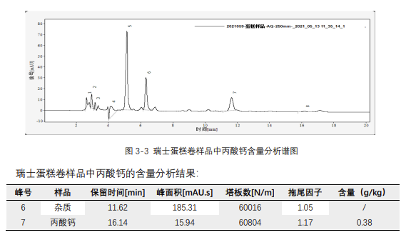 圖 3-3 瑞士蛋糕卷樣品中丙酸鈣含量分析譜圖