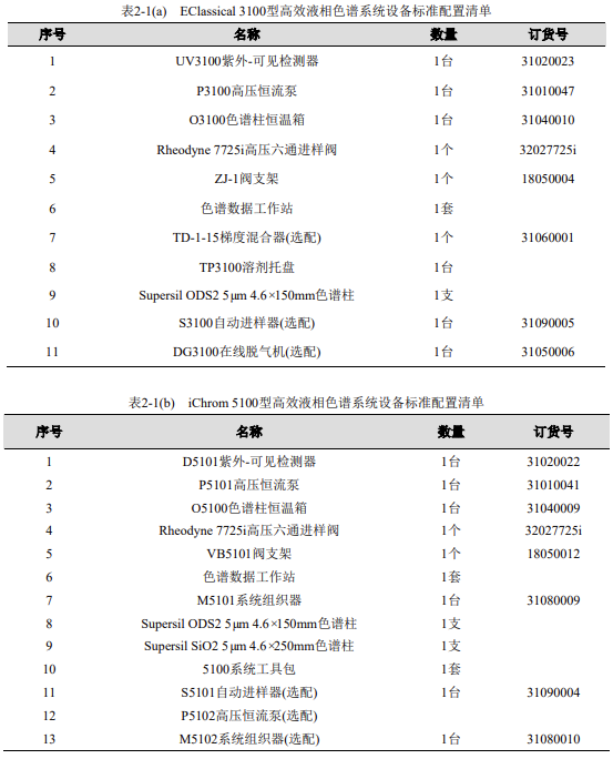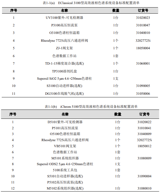 表 1-1 (a) EClassical 3100 型高效液相色譜系統(tǒng)設(shè)備標(biāo)準(zhǔn)配置清單