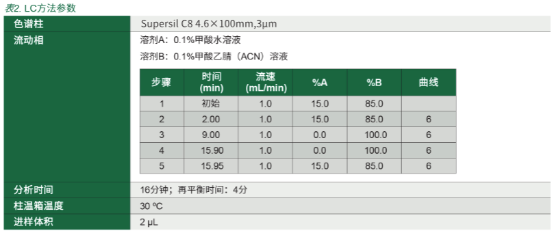 使用的所有溶劑、試劑和稀釋劑均為 HPLC 級(jí)或更高。