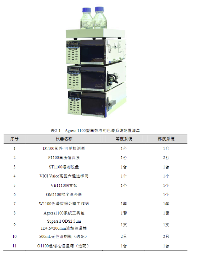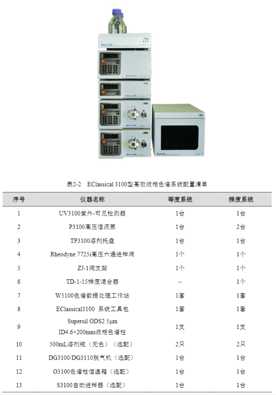 表 2-2 EClassical 3100 型高效液相色譜系統(tǒng)配置清單