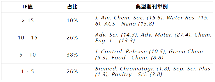 高質(zhì)量成果占比顯著:IF≥5的論文占總數(shù)的74%。其中,IF≥10的較高及以上水平論文占比36%。這清晰地表明,使用依利特產(chǎn)品所產(chǎn)出的數(shù)據(jù),能夠穩(wěn)定支撐研究發(fā)表于領(lǐng)域內(nèi)具有重要影響力的核心期刊。