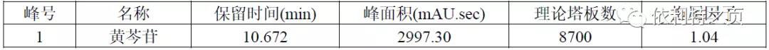 理論板數(shù)按黃芩苷峰計(jì)算應(yīng)不低于2500。