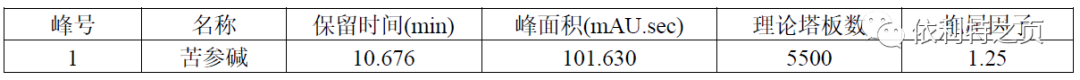 理論塔板數(shù)按苦參堿峰計算應不低于3000。